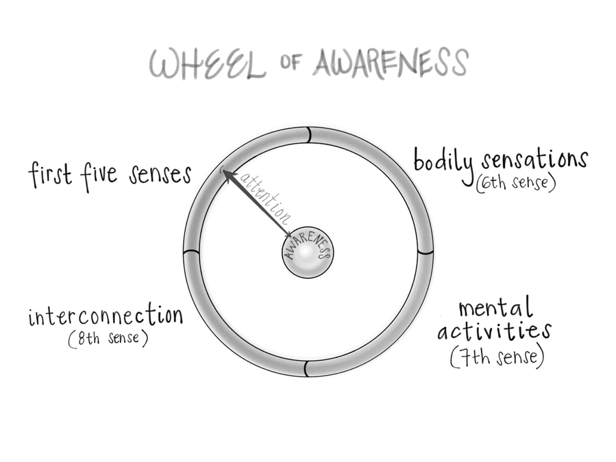 Building upon the nature of the mind, Siegel created what he calls the “Wheel of Awareness," a form of focusing attention in an integrative, mindful way.